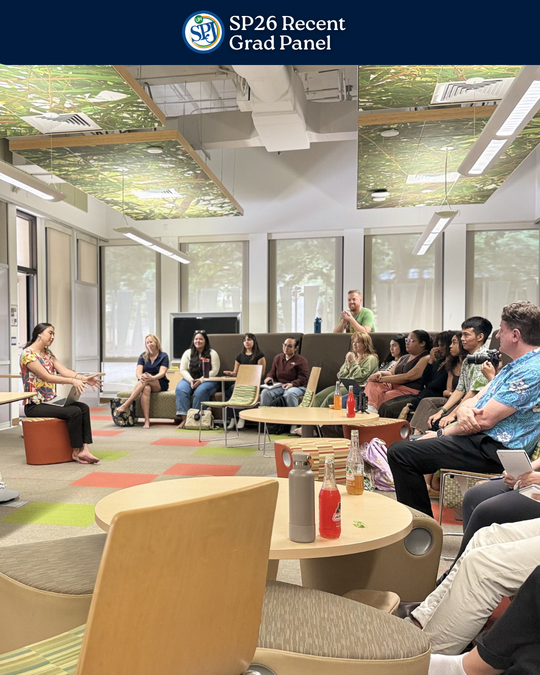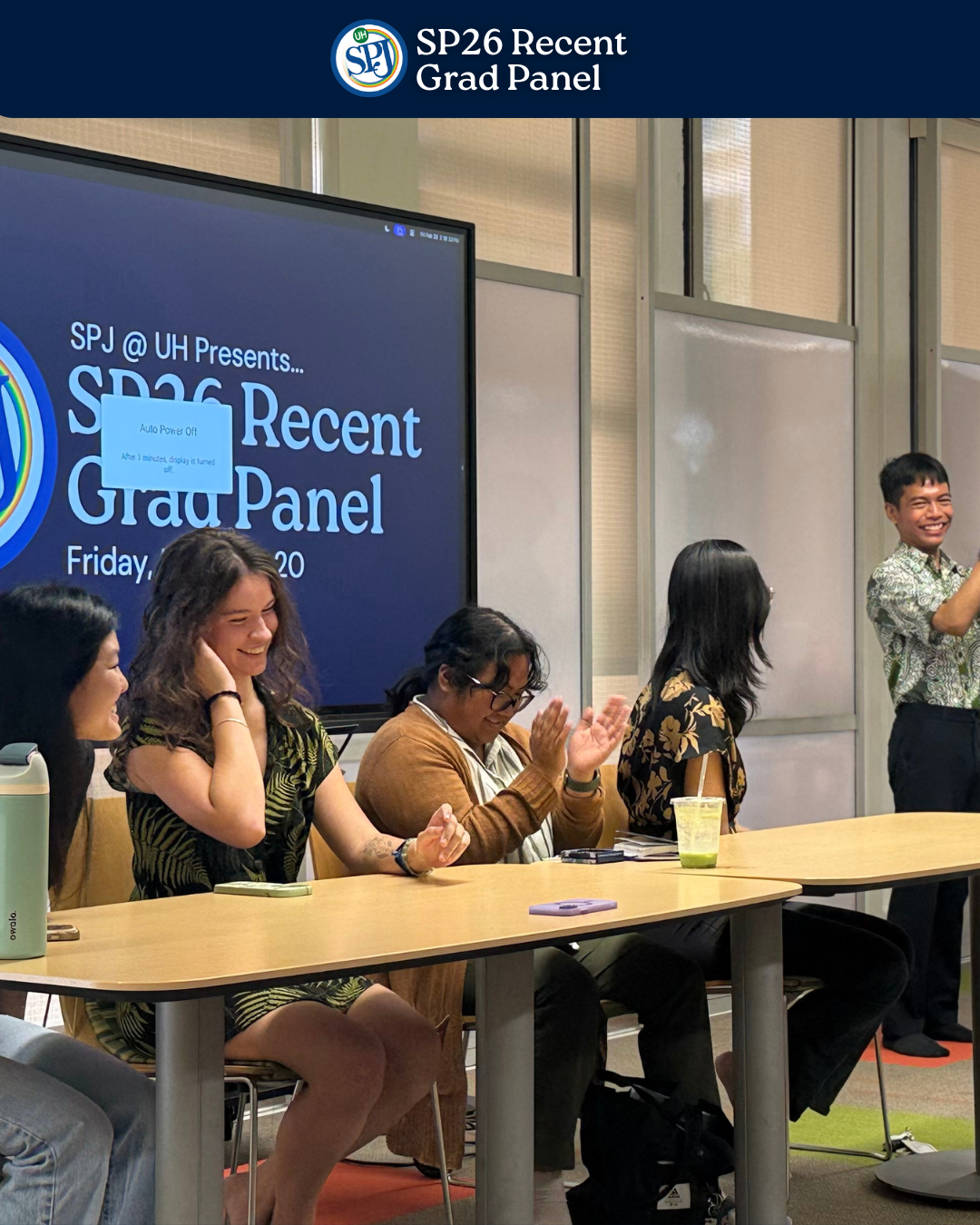 Planned by me, the SP26 Recent Grad Panel brought together four recent journalism graduates from UH for a talk story session with current undergrads giving insight on their personal and professional transition from school.