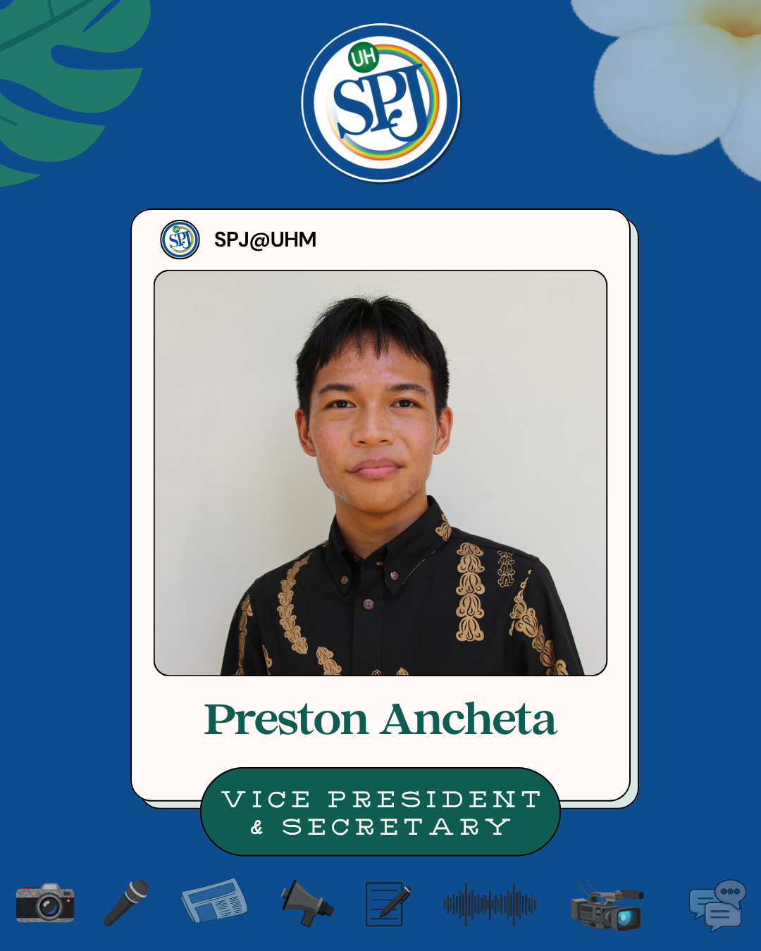 As the Vice President, Secretary of the Society of Professional Journalists at the University of Hawai'i at Mānoa I am committed to providing the best for students and communities alike.